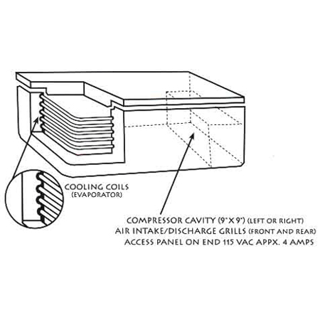 - Copper refrigeration tubing is wrapped in a continuous length with no solder joints or fittings. This prevents leaking from occurring. The tubing is then bonded and laminated directly to the outside of the interior fiberglass walls with a thermally conductive polymer.