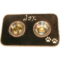 Our Custom Embroidered Pet Dining Mats from Boaters Catalog are Made of MARINE GRADE plush carpet that is antimicrobial, with a non-skid rubber backing. All edges are beautifully finished with poly binding. We provide custom embroidery to match. We offer your custom pet mat in 4 sizes based on your pets’ size. Our mats are easy to clean and our bowls are Stainless Steel and dishwasher safe, 2 stainless steel bowls per Pet Feeding Set.