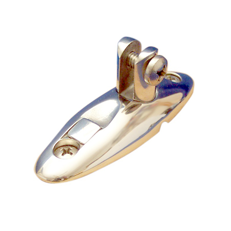 Our Quick Release Top Hinge from Boaters Catalog, unlike traditional Bimini top fittings, this hinge’s quick release feature allows the owner to easily remove or install the top without having to keep track of screws and pins. The hinge snaps into the base and stays attached to the Bimini top when the two are separated.
