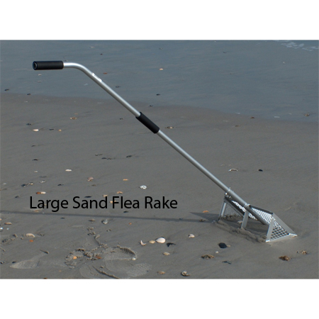Our Sand Flea Rakes from Boaters Catalog are the most efficient way to collect bait for the day. Just find the area of the breaking surf where the sand fleas hang out and get your bait for the day in just a few minutes.