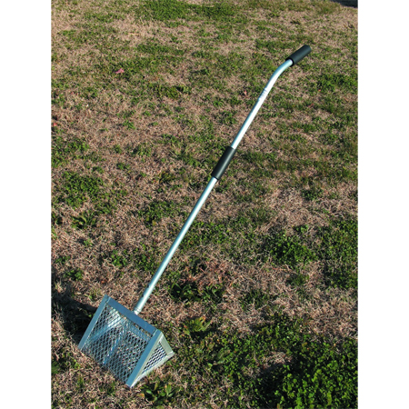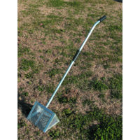 The Large Rake (ANG167) is Anodized aluminum and has a 15″ wide basket and 58″ long removable handle. The handle has two fasteners for a secure fit.