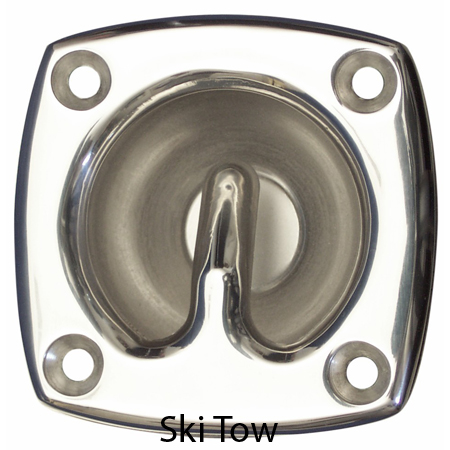 Our Flush Mounted Ski Tow, 3.5″ L x 3.5″ W x 1.25″ Deep, keeps your transom clear of protruding ski tows.