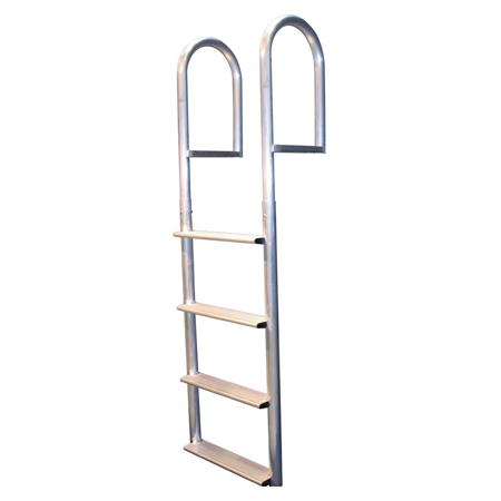 Captain Charlie’s Wide Tread Straight Ladder from Boaters Catalog is perfect for seawalls and stationary docks with fluctuating water lines, makes climbing in and